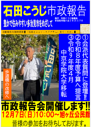 石田こうじ市政報告 令和7年12月7日(日)10:00 旭ヶ丘公民館