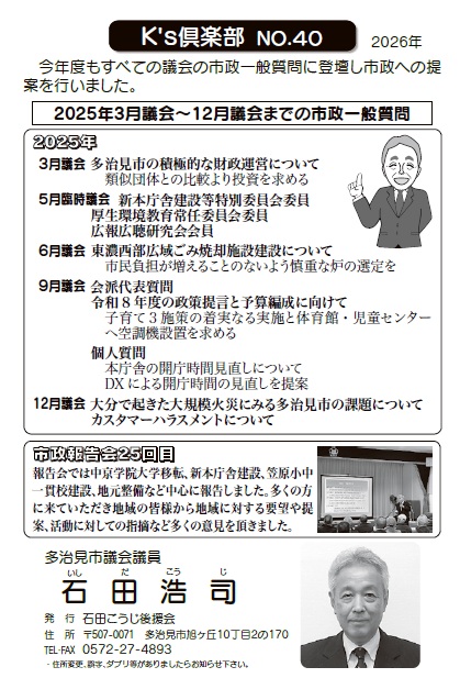 石田こうじ市政報告 令和7年12月7日(日)10:00 旭ヶ丘公民館